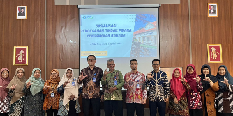 Yogyakarta, 8 Oktober 2025 — Balai Bahasa Provinsi Daerah Istimewa Yogyakarta melaksanakan Sosialisasi Bahasa Hukum di SMK Negeri 2 Yogyakarta. Kegiatan ini diikuti oleh para guru dan siswa dengan tujuan meningkatkan pemahaman tentang penggunaan bahasa Indonesia yang baik, benar, dan santun dalam ranah hukum serta kehidupan sehari-hari. Dalam kegiatan tersebut, Balai Bahasa Provinsi DIY juga melaksanakan penandatanganan nota kerja sama dengan SMK Negeri 2 Yogyakarta tentang sinergisitas pengembangan, pembinaan, dan pelindungan bahasa dan sastra. Penandatanganan dilakukan oleh Kepala Balai Bahasa Provinsi DIY, Drs. Anang Santoso, M.Hum., dan Kepala SMK Negeri 2 Yogyakarta, Drs. Agus Waluyo, M.Eng.