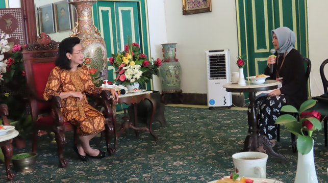 Kepala Balai Bahasa Provinsi DIY, Dra. Dwi Pratiwi, M.Pd., menyampaikan bahwa Balai Bahasa Provinsi DIY akan menggelar seminar dengan tema “Bahasa Jawa sebagai Prasarana Berpikir dan Sarana Pendukung Pertumbuhan dan Perkembangan Ilmu Pengetahuan, Teknologi, dan Produk Budaya Lokal” untuk memperingati Hari Bahasa Ibu Internasional 2023. Oleh karena itu, Balai Bahasa Provinsi DIY mengharapkan dukungan dan peran serta GKR Hemas dalam seminar tersebut.