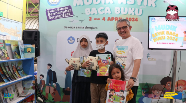 Jakarta, 2 April 2024 – Kementerian Pendidikan, Kebudayaan, Riset, dan Teknologi (Kemendikbudristek) melalui Badan Pengembangan dan Pembinaan Bahasa (Badan Bahasa) menggelar kegiatan Mudik Asyik Baca Buku Tahun 2024. Kegiatan ini terselenggara atas kerja sama dengan berbagai instansi dan mitra kerja, yaitu Perpustakaan Nasional Republik Indonesia, Pusat Perbukuan, IKAPI, PT Gramedia, PT Macanan Jaya, PT Temprina, PT Provisi Mandiri Pratama, Dar! Mizan, Noura Publishing, Yayasan Litara, dan Reading Bugs.